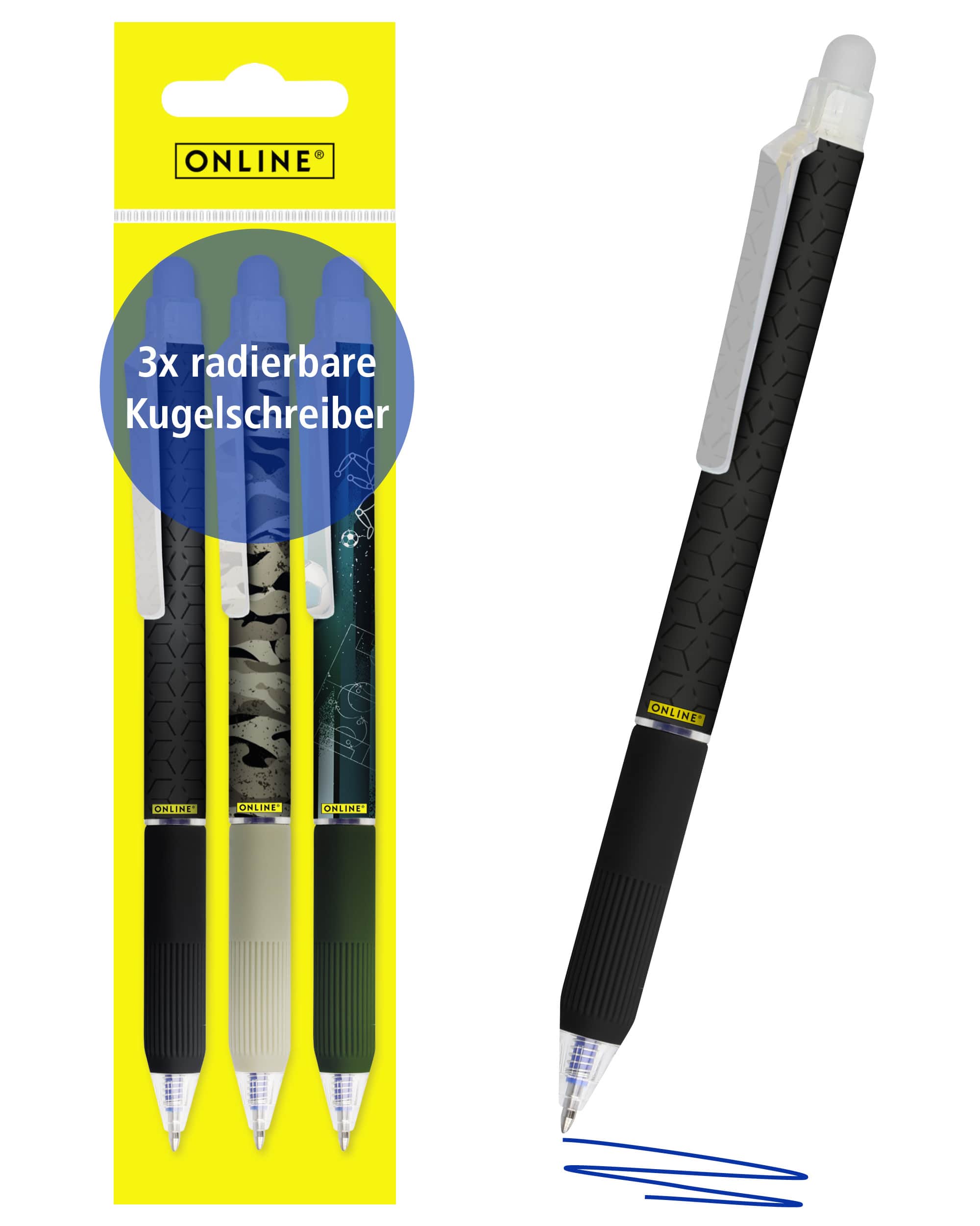 3x Radierbare Gelpens ONLINE magiXX Design Boys, Gelschreiber blau