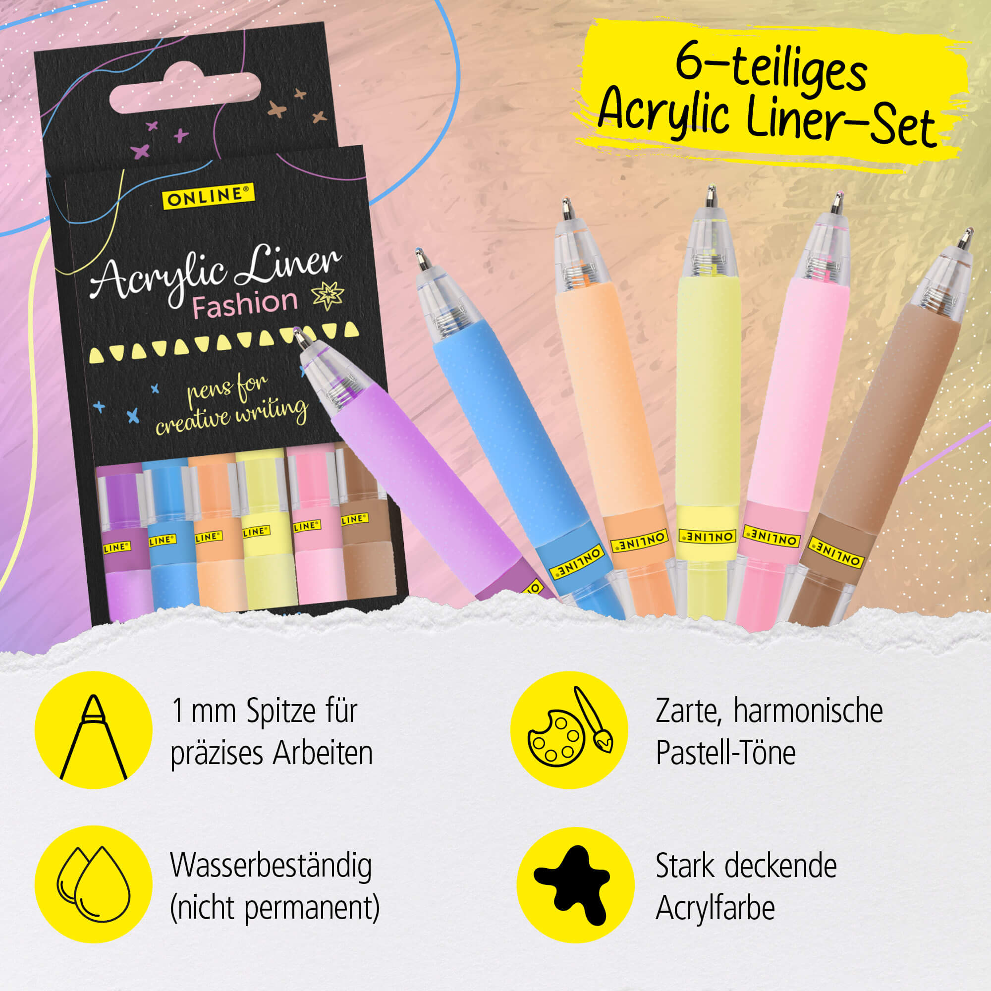 - 6er Set Acrylic Liner mit stark deckender Acrylfarbe