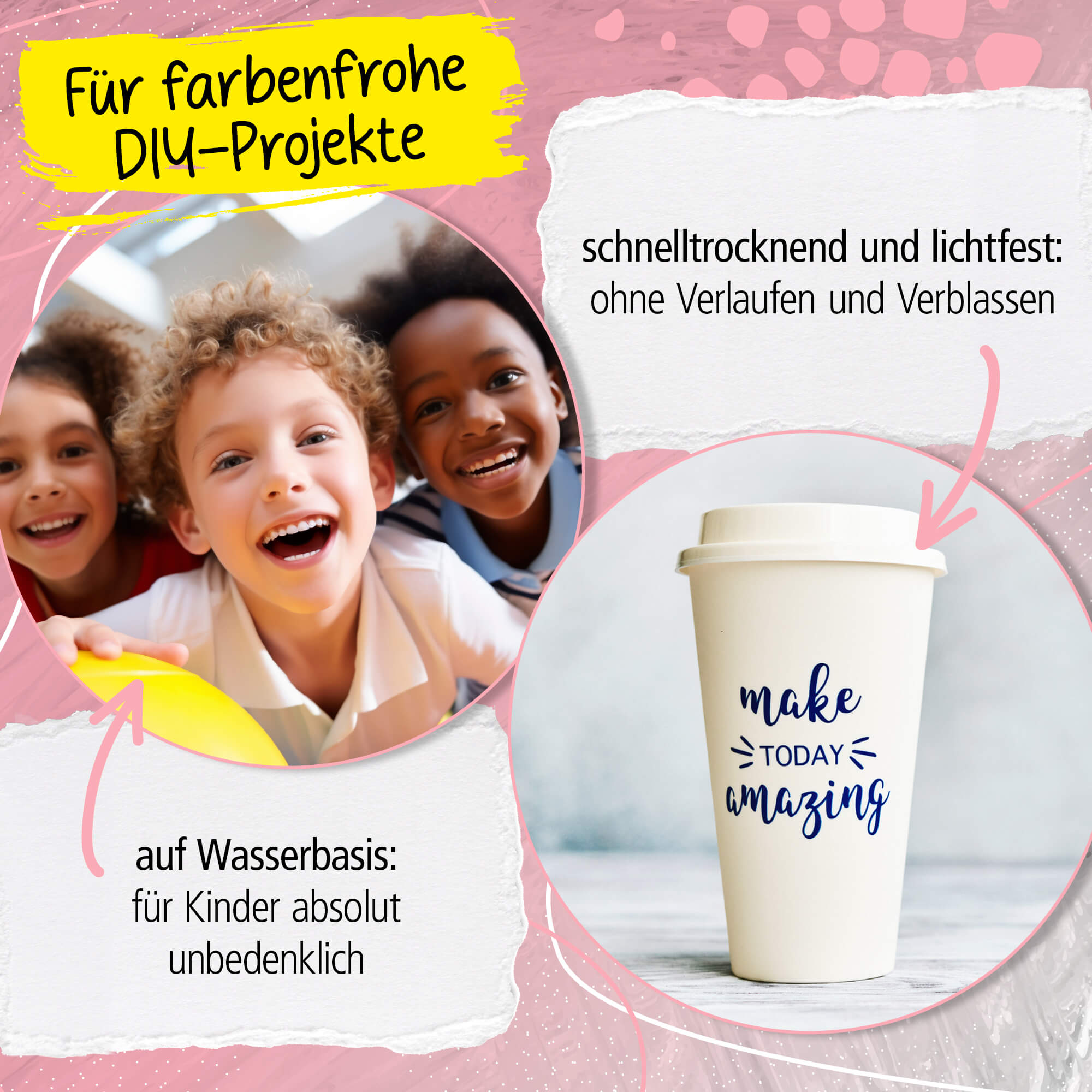 Für Kreative jeden Alters: Die Acrylfarbe auf Wasserbasis ist nahezu geruchlos, enthält keine scharfen Lösungsmittel und eignet sich daher ideal für Kinder.