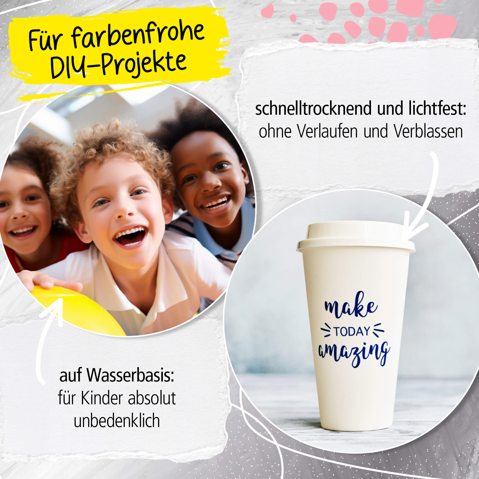 Für Kreative jeden Alters: Die Acrylfarbe auf Wasserbasis ist nahezu geruchlos, enthält keine scharfen Lösungsmittel und eignet sich daher ideal für Kinder.