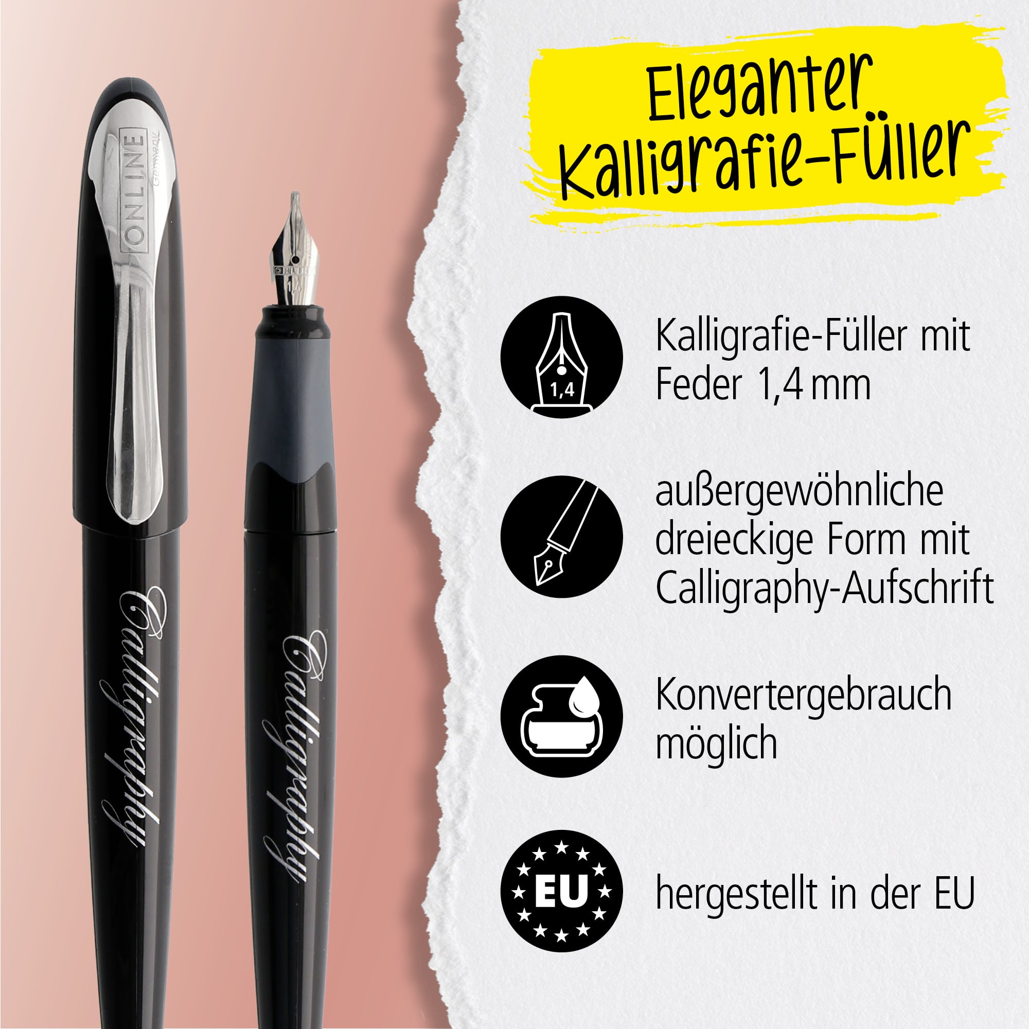 Der ONLINE AIR Best Writer Black 1,4 mm – der innovative Design-Schönschreibfüller. Von Kappe bis zum Schaft überzeugt die softe Dreiecksform ebenso wie das hochwertige, ergonomische Griffstück.