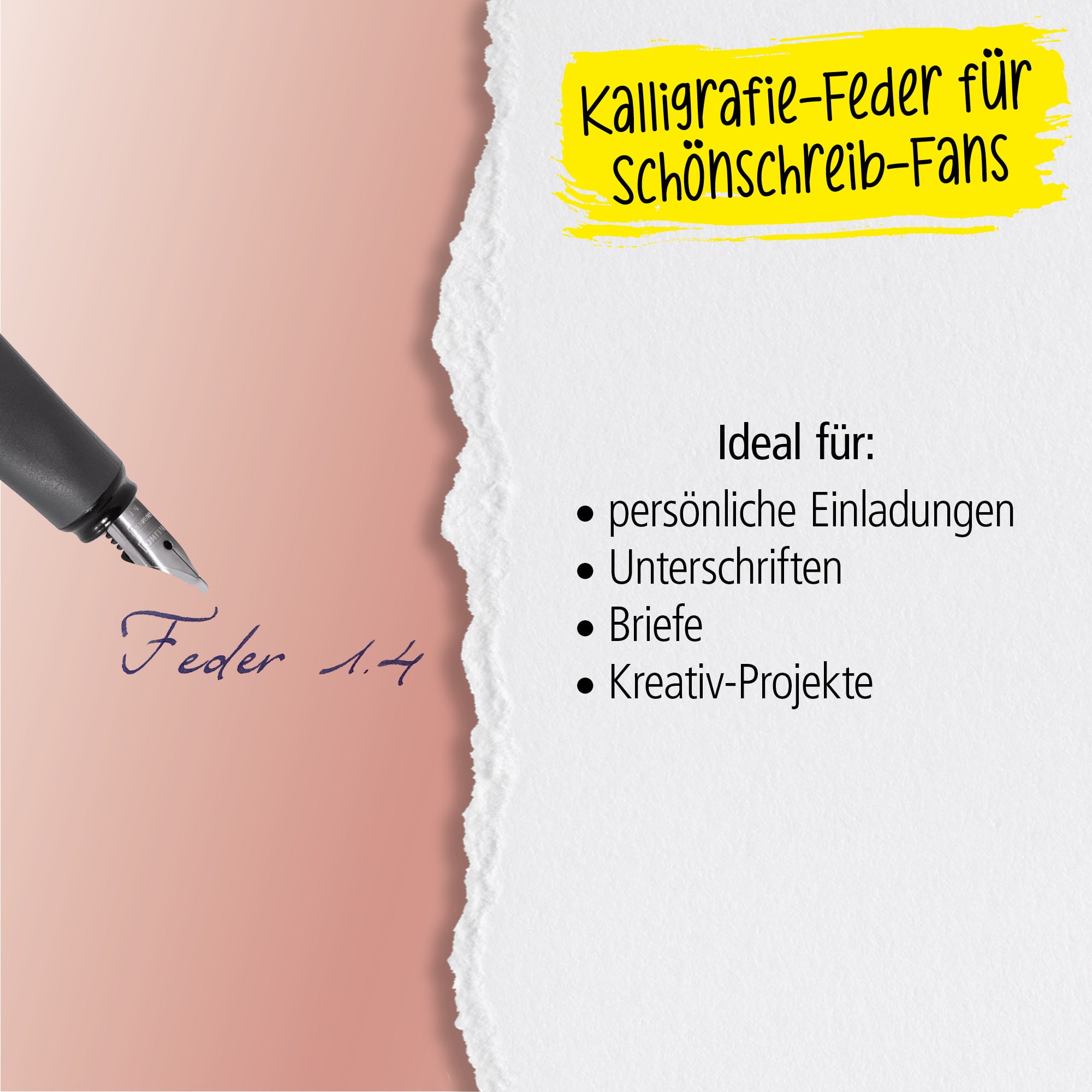 Der Best Writer ist der Schönschreibfüller der ONLINE AIR Serie und steht für kreatives Schreiben und Gestalten im Schulheft, auf Glückwunschkarten, Urkunden usw. Mit dem Best Writer fällt es leicht, ein attraktives, individuelles Schriftbild zu erzielen. Sowohl die hochwertige Ausführung des gesamten Füllhalters als auch die Kalligrafie-Feder in der Federstärke 1,4 mm steht für die nachhaltige, sorgfältige Qualität des Schreibgerätes, die der stabile Metallclip unterstreicht.