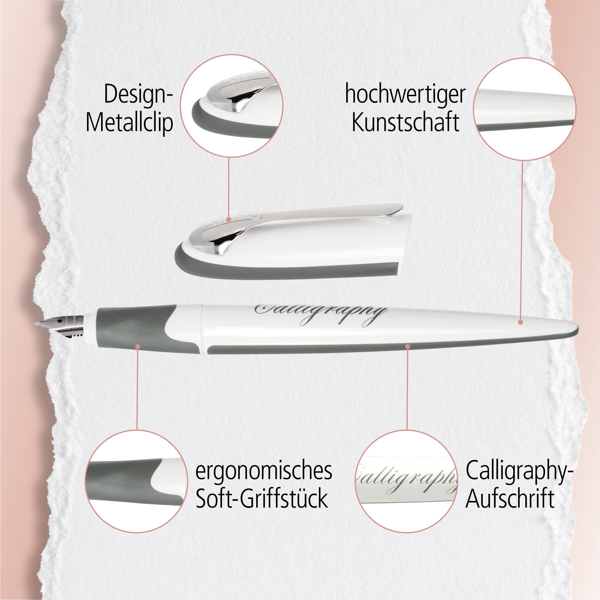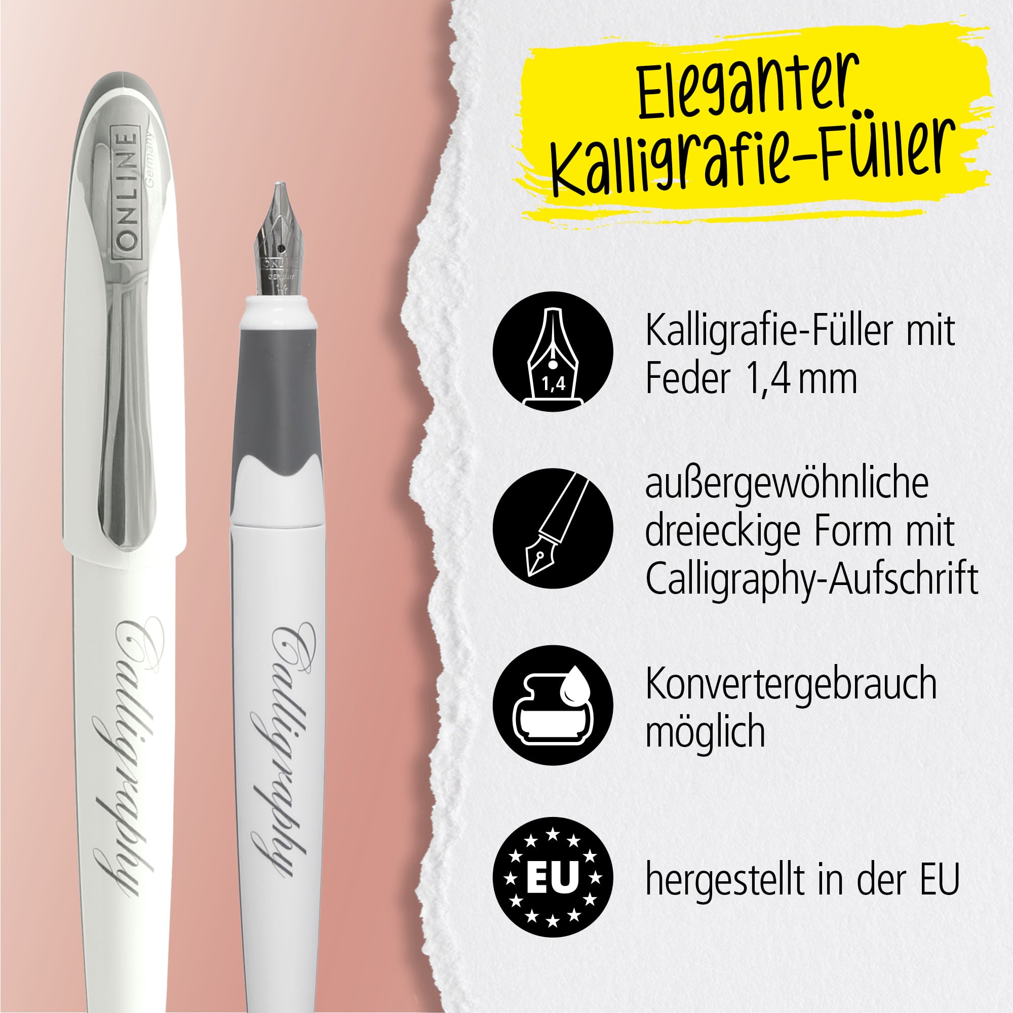 Der ONLINE AIR Best Writer White 1,4 mm – der innovative Design-Schönschreibfüller. Von Kappe bis zum Schaft überzeugt die softe Dreiecksform ebenso wie das hochwertige, ergonomische Griffstück.
