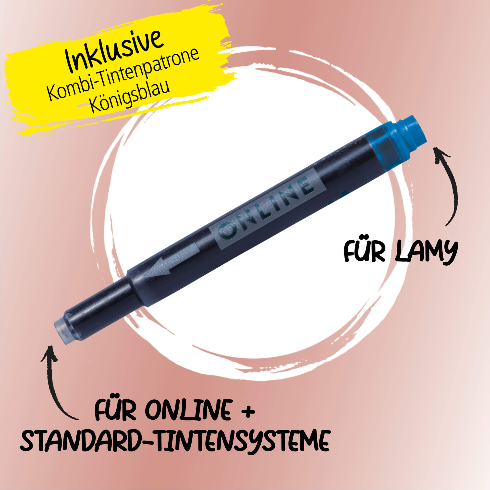 Nachfüllbar mit ONLINE-Kombipatronen, 2 Standard-Tintenpatronen oder Konverter.