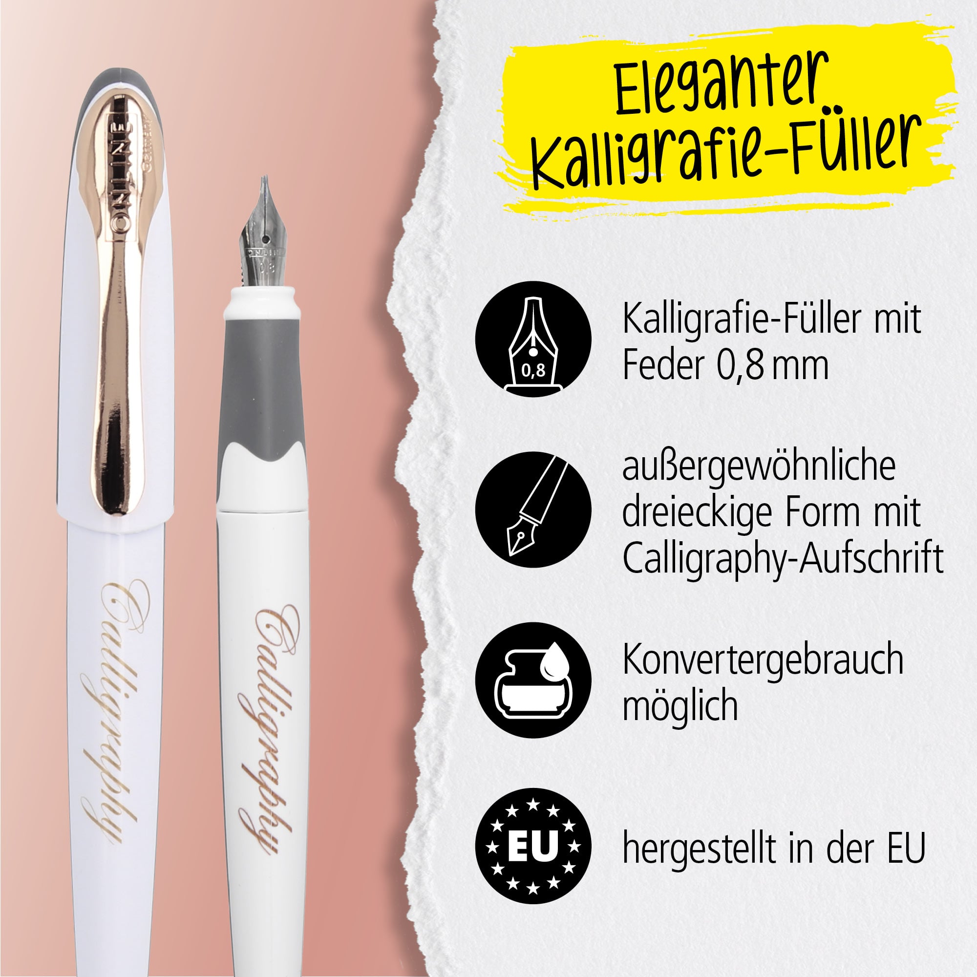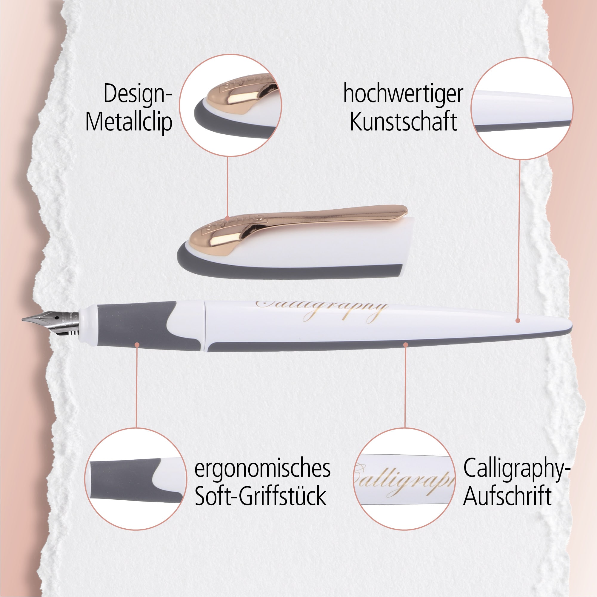 Der ONLINE AIR Best Writer White Rose 0,8 mm – der innovative Design-Schönschreibfüller. Von Kappe bis zum Schaft überzeugt die softe Dreiecksform ebenso wie das hochwertige, ergonomische Griffstück.