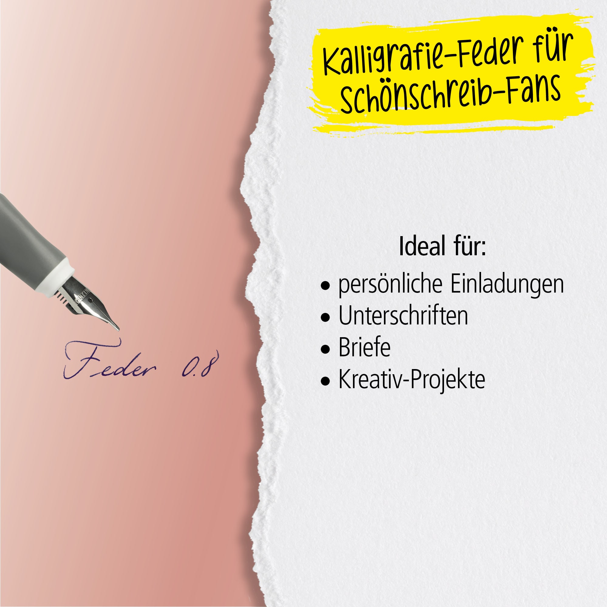 Der Best Writer ist der Schönschreibfüller der ONLINE AIR Serie und steht für kreatives Schreiben und Gestalten im Schulheft, auf Glückwunschkarten, Urkunden usw. Mit dem Best Writer fällt es leicht, ein attraktives, individuelles Schriftbild zu erzielen. Sowohl die hochwertige Ausführung des gesamten Füllhalters als auch die Kalligrafie-Feder in der Federstärke 0,8 mm steht für die nachhaltige, sorgfältige Qualität des Schreibgerätes, die der stabile Metallclip unterstreicht. Stück für Stück geprüfte Qualität – Made in Germany.