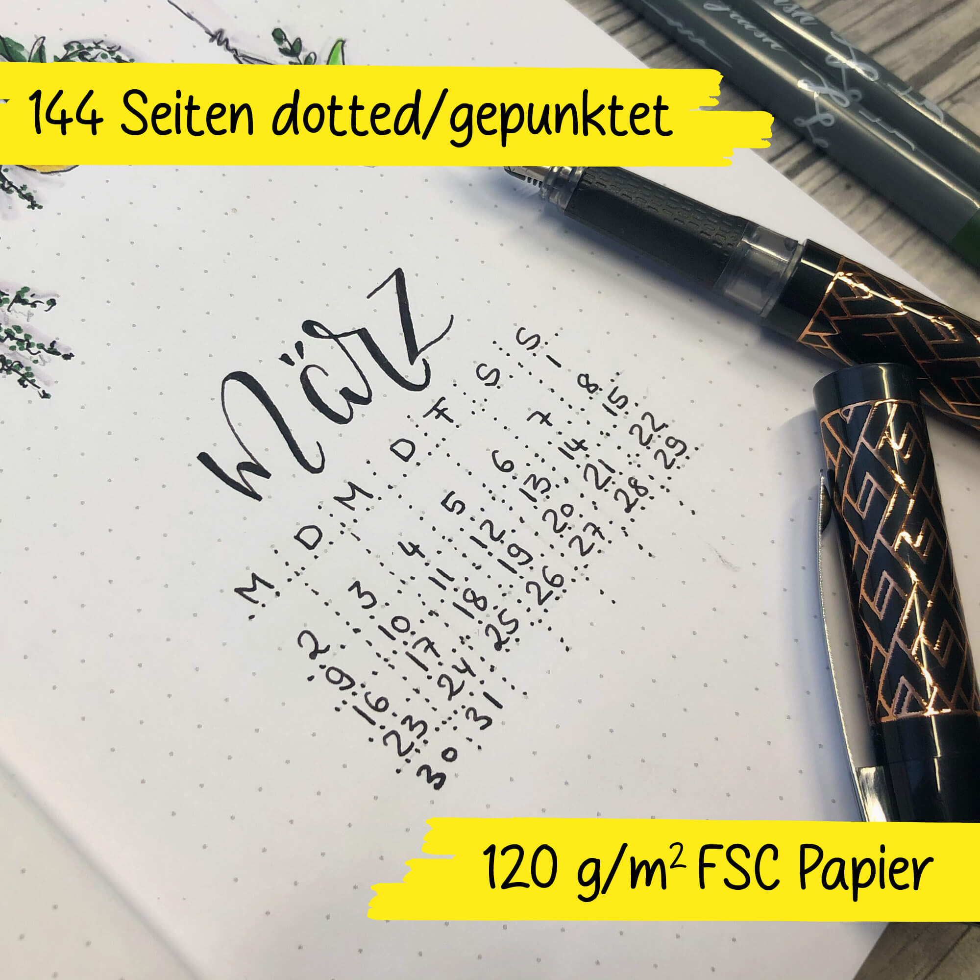 PREMIUM QUALITY: High-quality FSC-certified 120 g/m² paper with high ink compatibility in A5 format, 144 pages. Perfect for bullet journaling with hand lettering or calligraphy pens.