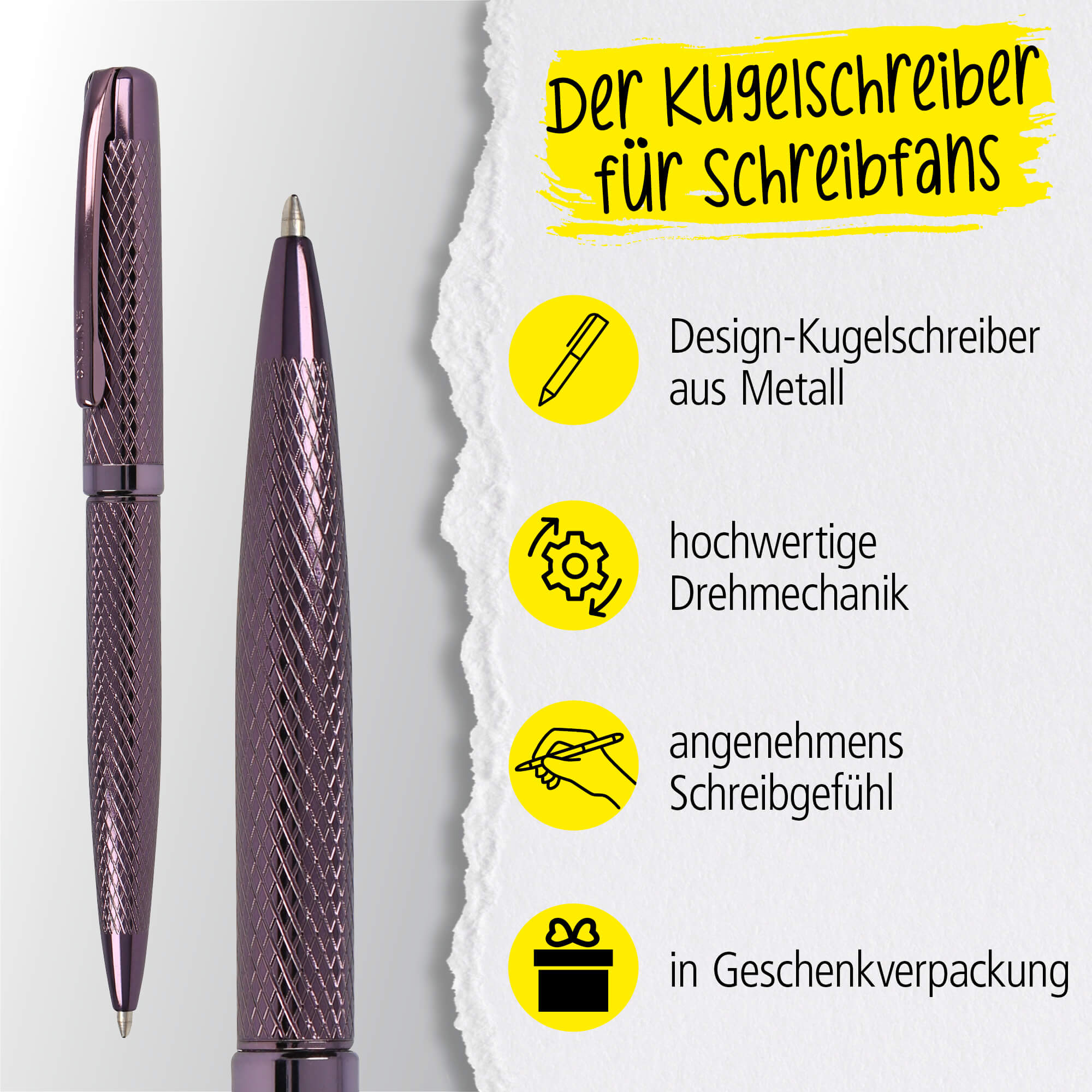 Drehkugelschreiber Eleganza Diamond Wine, aus Metall, auswechselbare Großraummine Schreibfarbe Schwarz dokumentenecht, inkl. Geschenkverpackung
