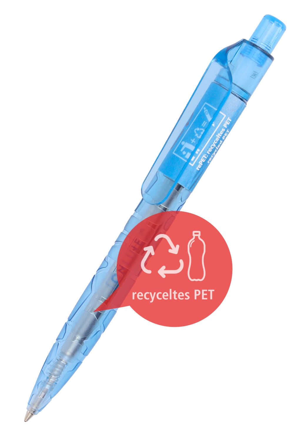 Entsorgtem PET-Kunststoff ein zweites Leben schenken und so die Umwelt schützen – mit dem 2nd LIFE PET-Kugelschreiber aus re-PET. Denn das Rohmaterial wird aus dem Recyclingprozess entsorgter PET-Flaschen, Trinkbechern etc. gewonnen. Das bedeutet: Für eine saubere Umwelt – Müllberge vermeiden. Die enthaltene internationale Großraummine – Schreibfarbe Blau – sorgt für (fast) unendliches Schreibvergnügen: circa 150 DIN A4-Seiten – ein weiterer Beitrag unsere Umwelt zu schützen. Dank seiner haptischen Oberfläche liegt der 2nd LIFE Kugelschreiber auch angenehm in der Hand. Nachfüllbar.