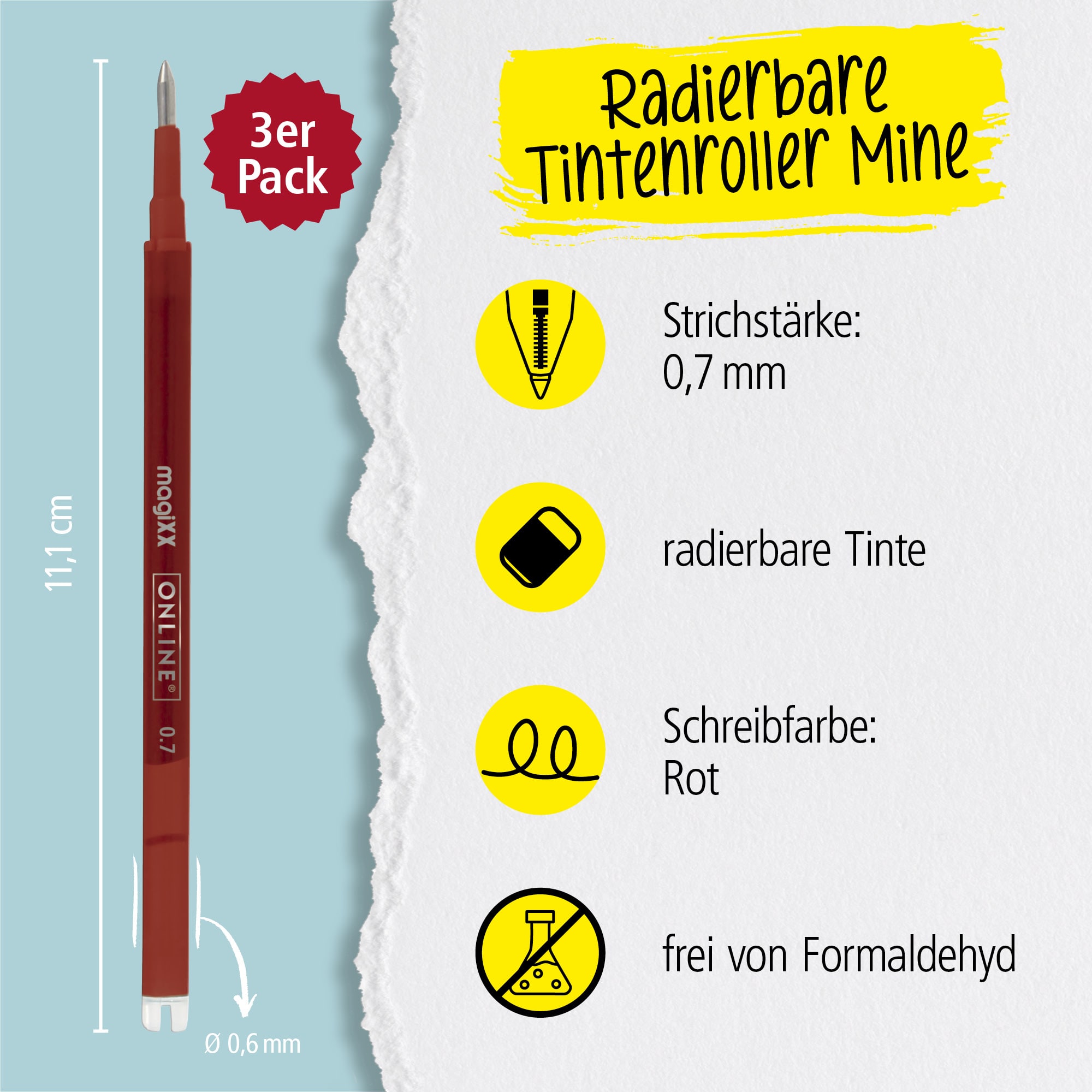 Radierbare Ersatzminen für ONLINE magiXX Gelschreiber - 0,7 mm rot