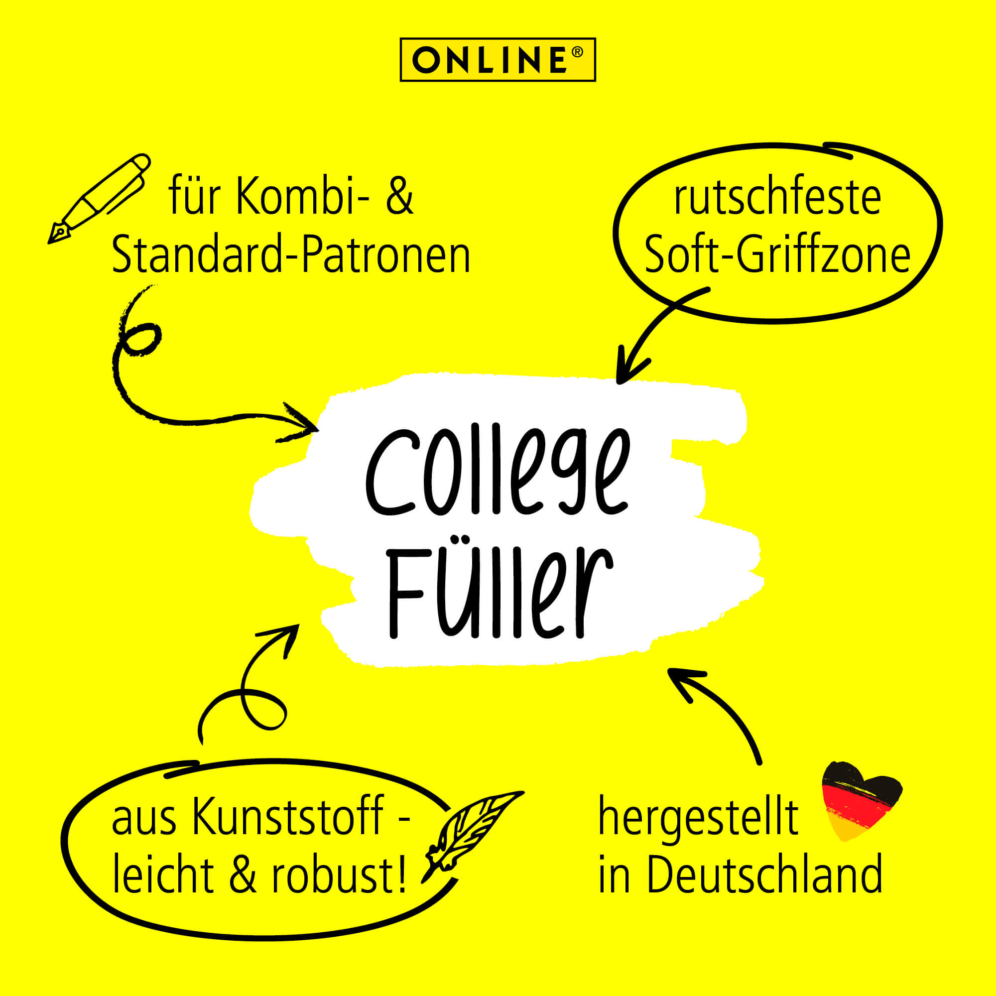 ERGONOMISCHES SCHREIBEN: Das Softtouch-Griffstück ist ergonomisch gestaltet für ein entspanntes Schreibgefühl. Auch im Dauer-Einsatz gibt es mit dem College Füllfederhalter kein Verkrampfen.