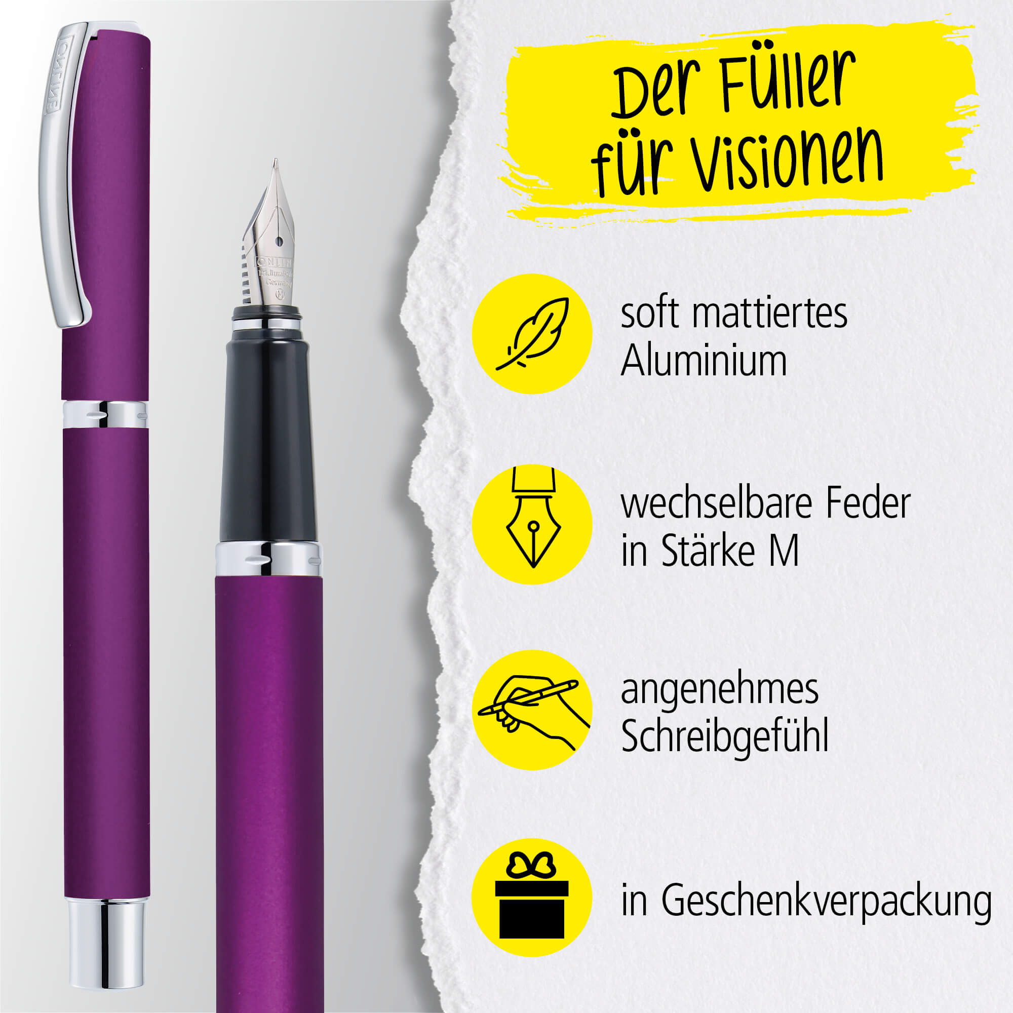 WECHSELBARE FEDER: Die edle Iridium-Feder in Stärke M (medium) kann durch das praktische „Easy Change System“ leicht ausgewechselt werden. Je nach Bedarf und Vorliebe ist der Füller so für unterschiedliche Strichstärken, von extra fein bis medium, verwendbar.