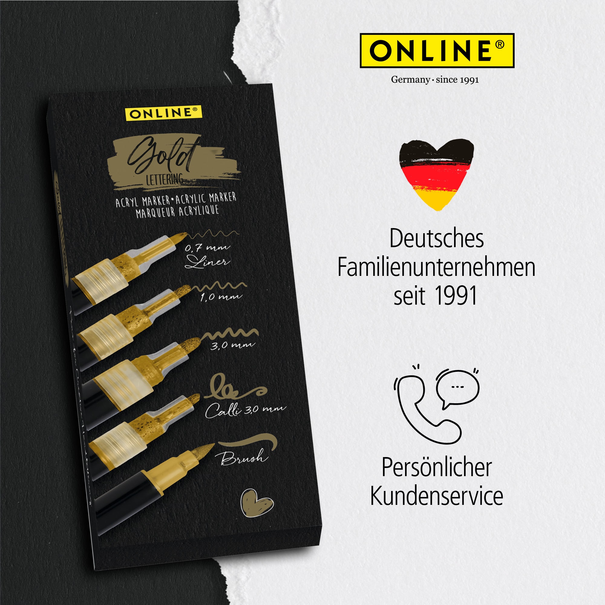 Gold Lettering Set mit Acryl Marker, Fineliner und Brushpen, 5 Stifte