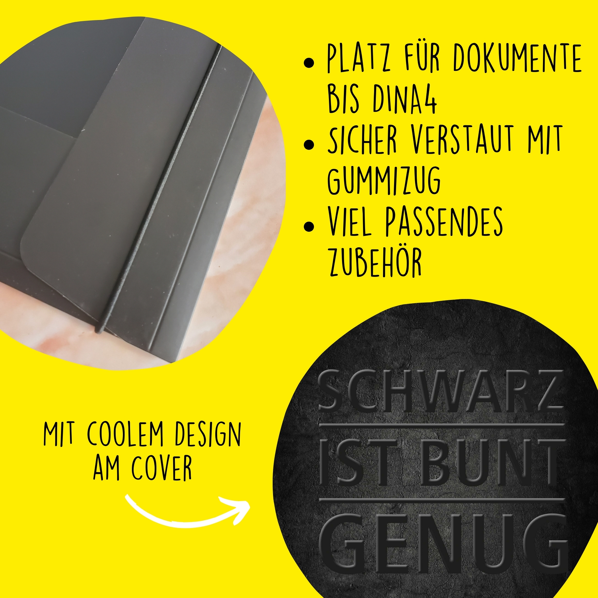 Gummizugmappe DIN A4 "Schwarz ist bunt genug"