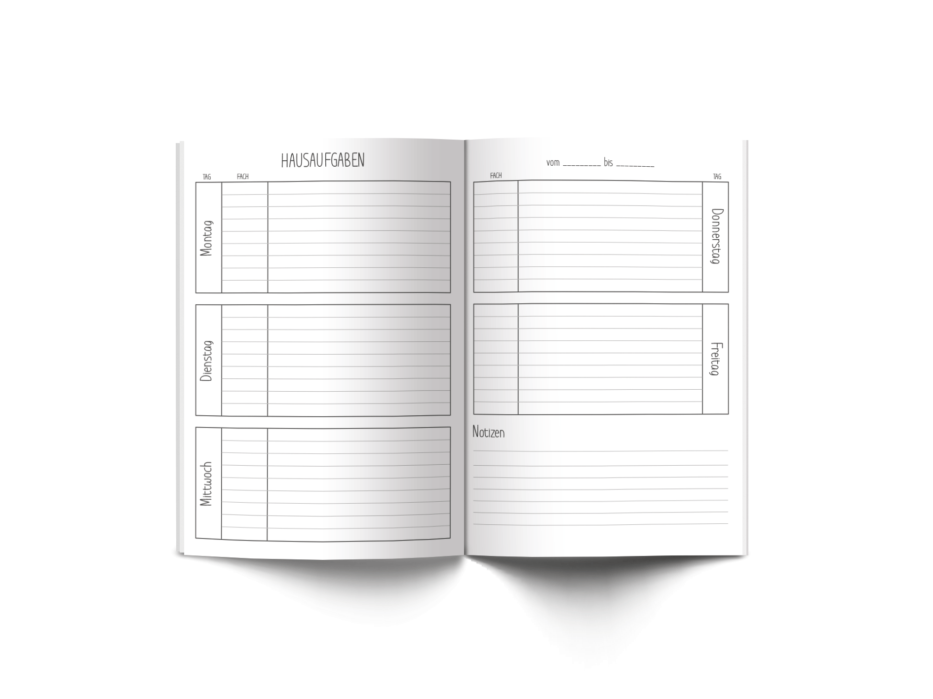 Hausaufgabenheft DIN A5 – deutschsprachig