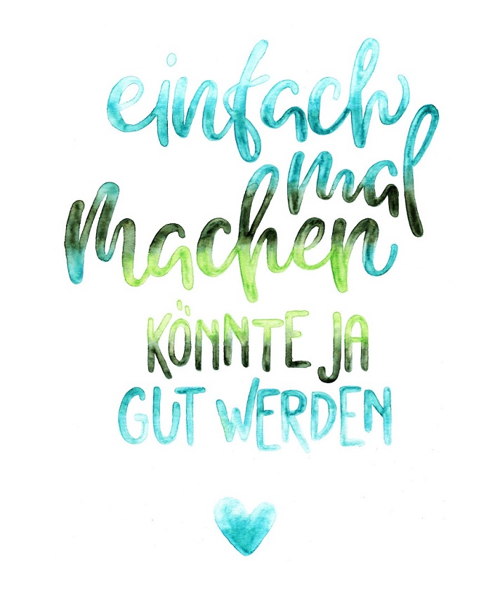 Dazu lädst du dir am besten die Motiv-Vorlage herunter, druckst sie dir aus und überträgst den Spruch auf dein Aquarellpapier . Dann kann es schon losgehen mit dem Verblenden. Folge einfach der Schritt-für-Schritt-Anleitung . Viel Spaß beim Blending!