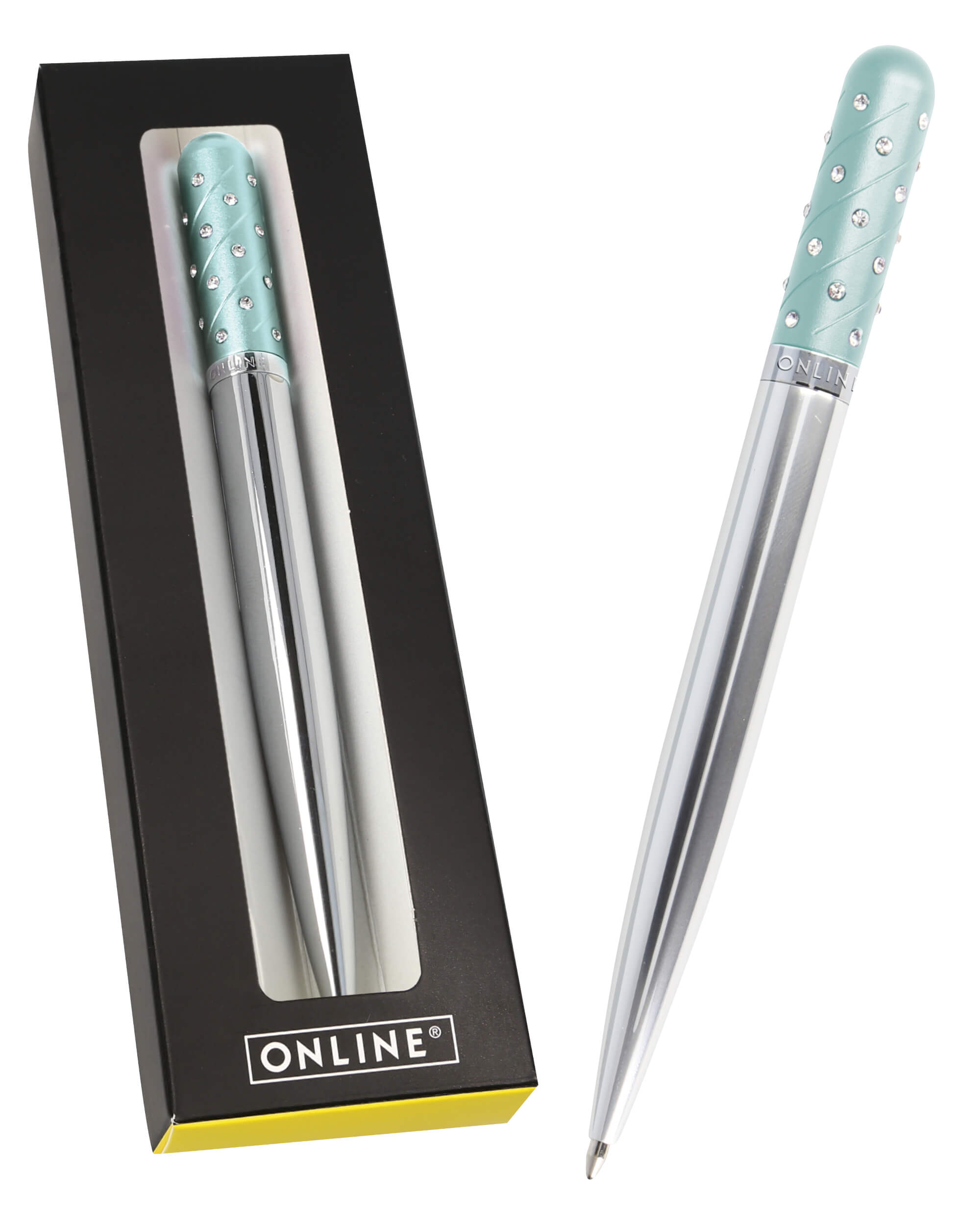 Kugelschreiber Crystal Pen Türkis, Metall, inkl. internationale Großraummine schwarzschreibend, in Geschenketui
