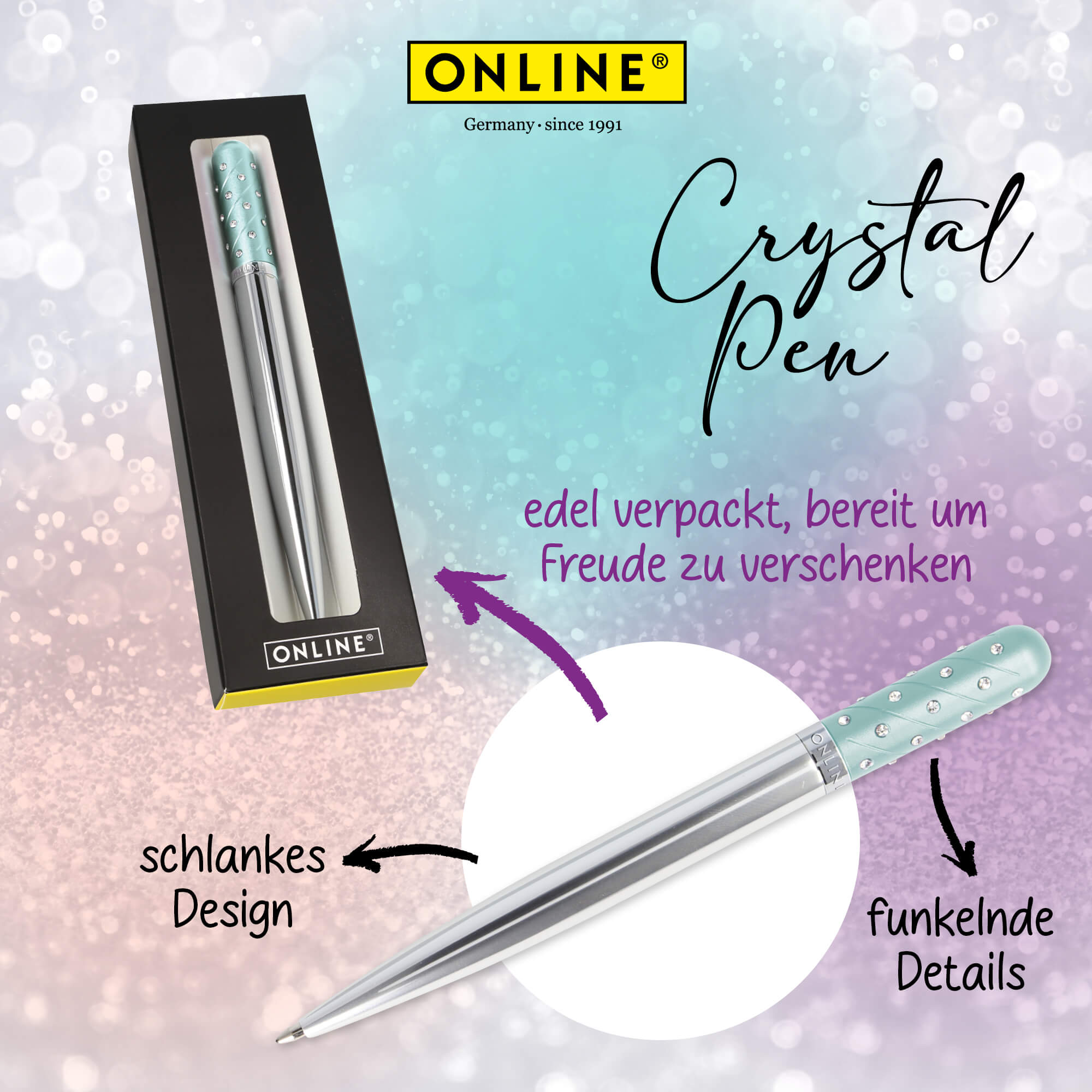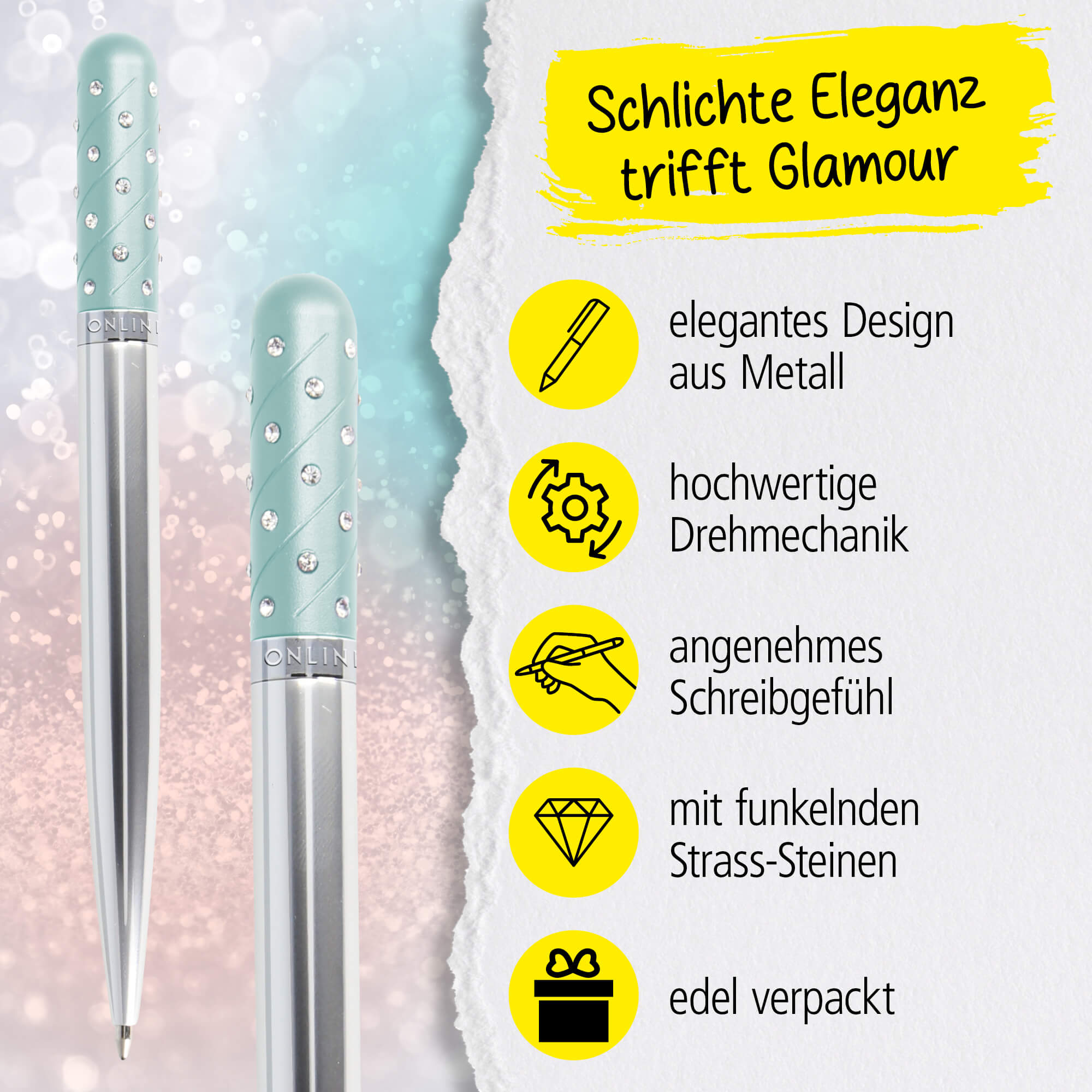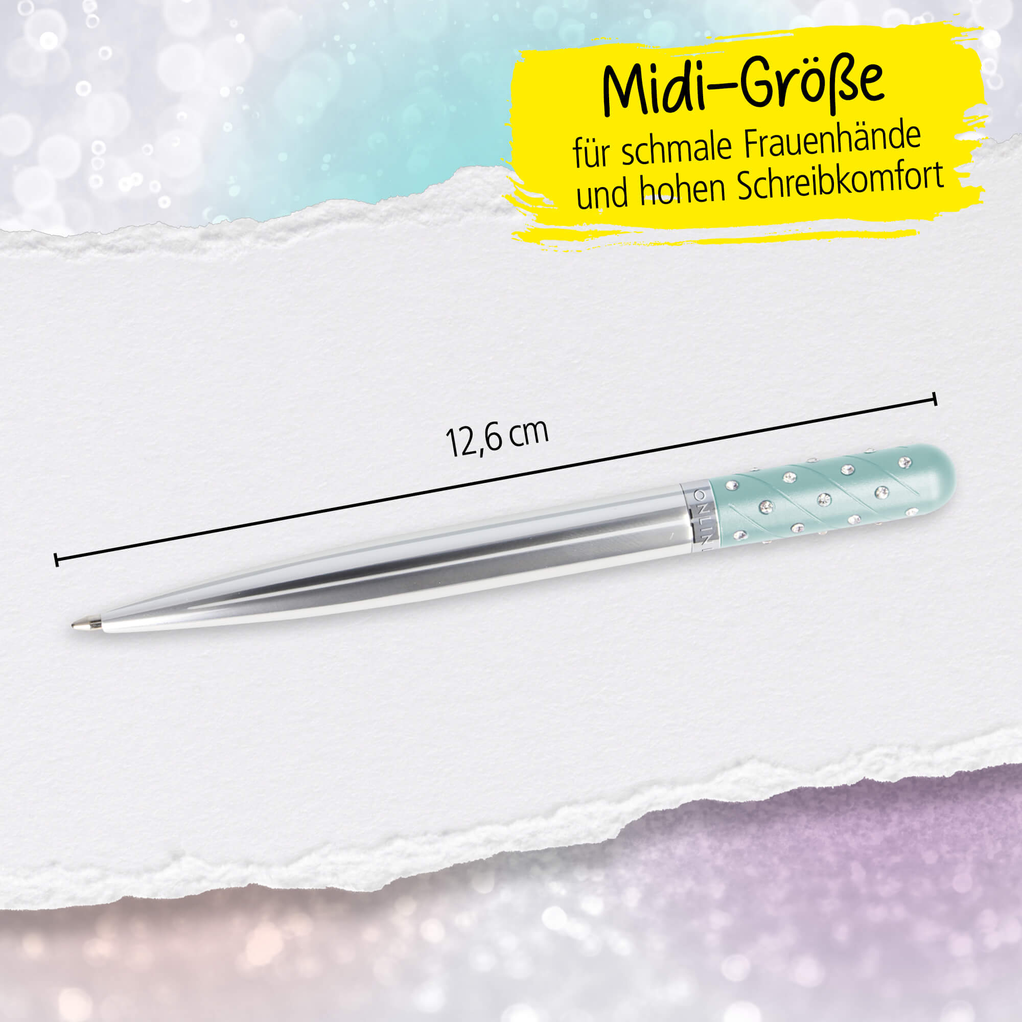 - DESIGN KUGELSCHREIBER: Der Kugelschreiber ist aus purem Aluminium. Die funkelnden Strass-Steine verleihen dem Stift ein modernes Aussehen