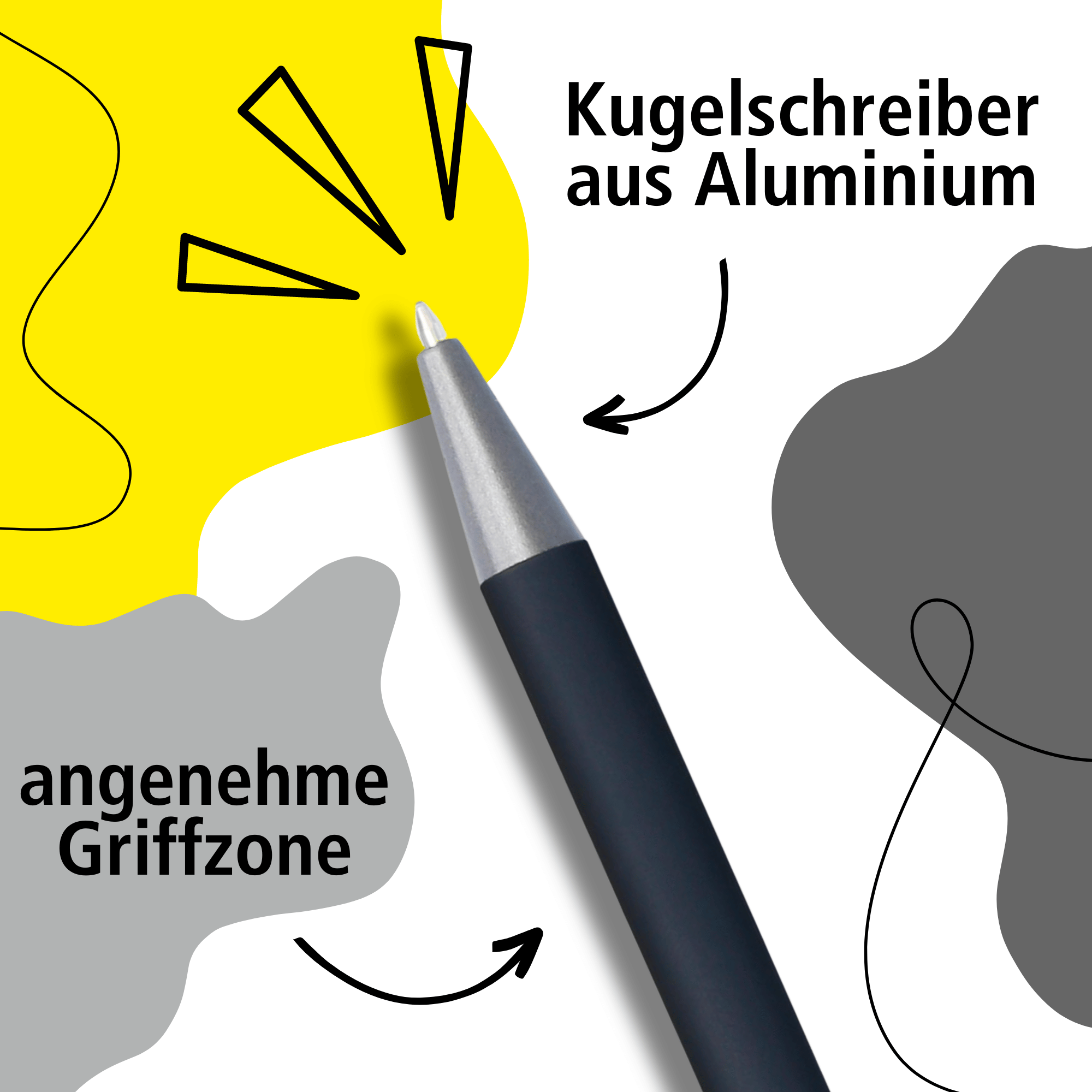 Der Design-Kugelschreiber Soft Metal von ONLINE überzeugt mit seiner angenehmen Oberfläche mit Softtouch-Feeling und garantiert Schreibvergnügen pur. Hochwertige Details, wie der Clip aus Metall, runden das Design ab. Ausgestattet mit einer internationalen Großraummine, Schreibfarbe Blau ist der stylische Kugelschreiber für jeden Einsatz bereit.