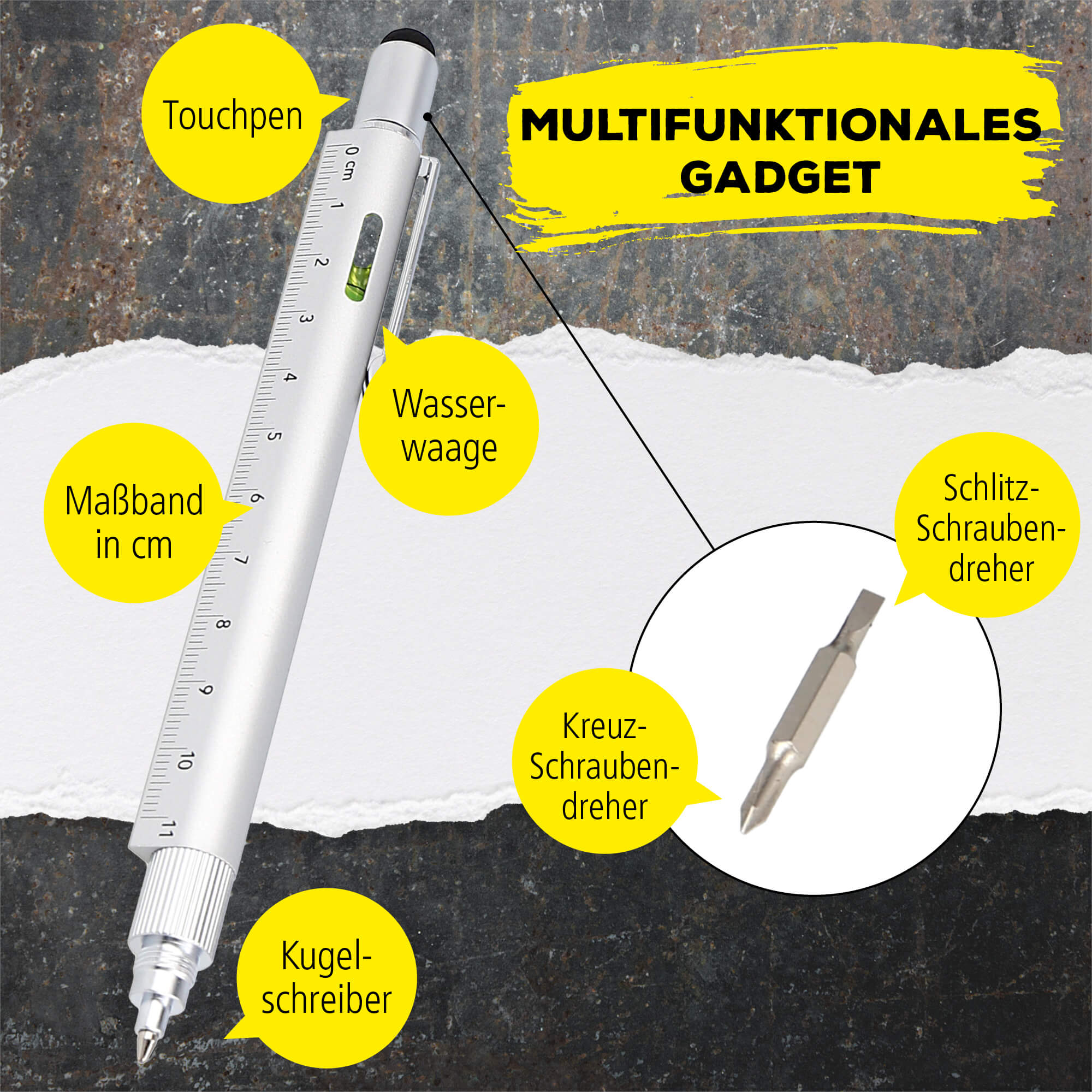 Multifunktionsstift 6-in-1, Kugelschreiber und Werkzeug Toolpen Silber