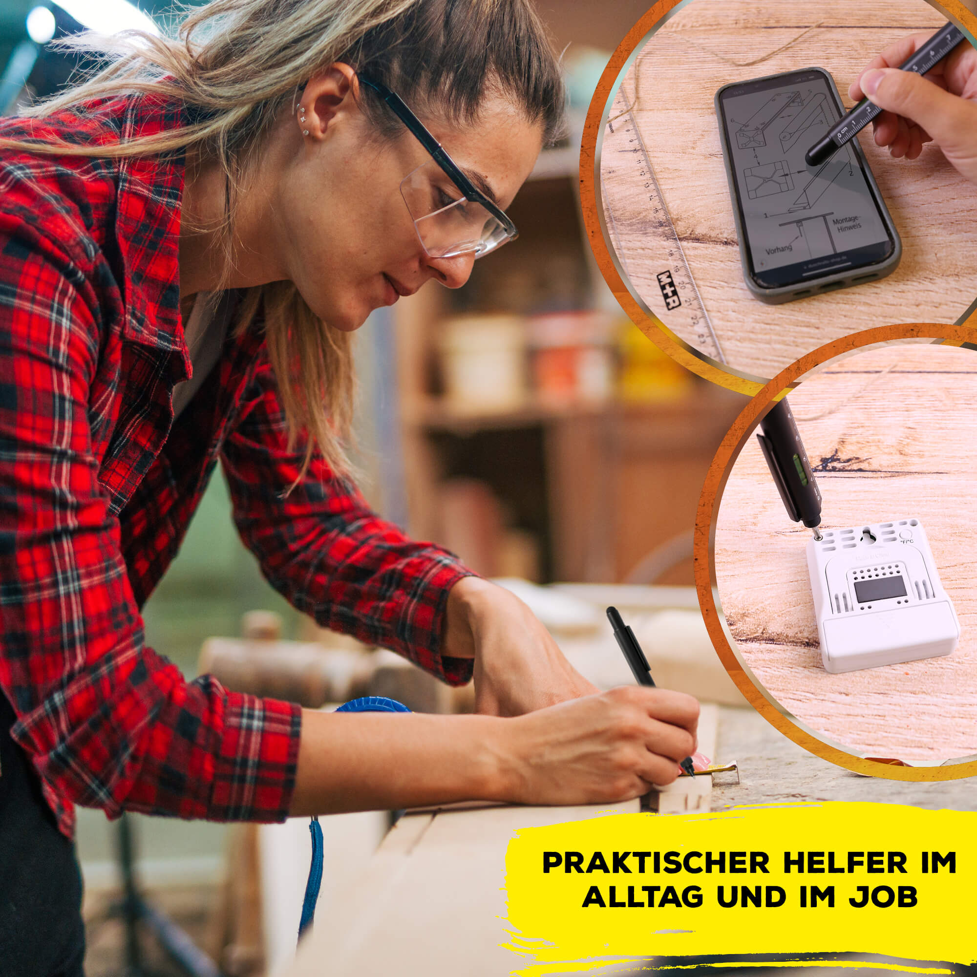 - Eine gerade Sache Der Stift mit Metallgehäuse und integrierter Wasserwage sorgt für akkurate Ergebnisse.