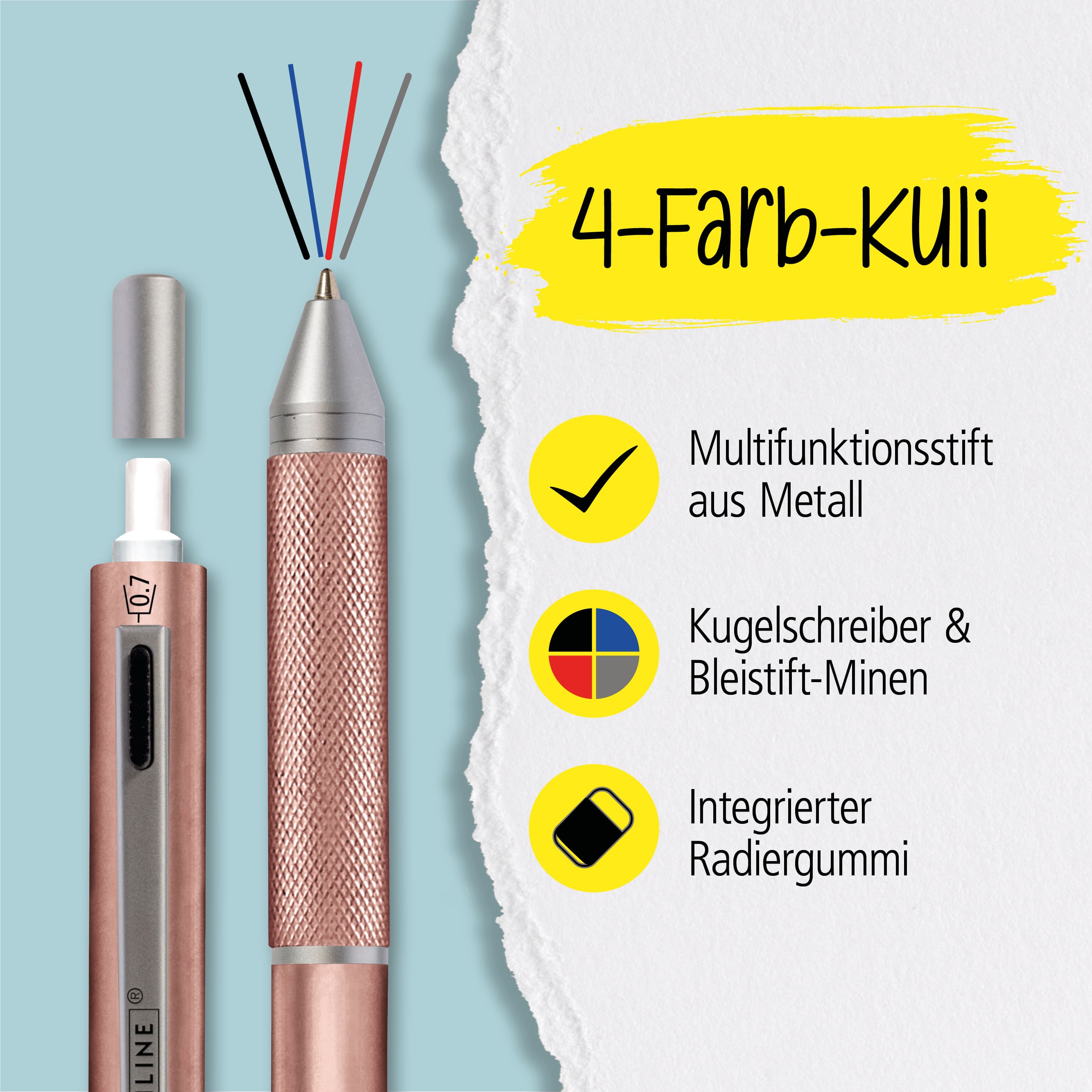 Multipen 4-in-1 Rosegold, inkl. Ersatzminen in Box