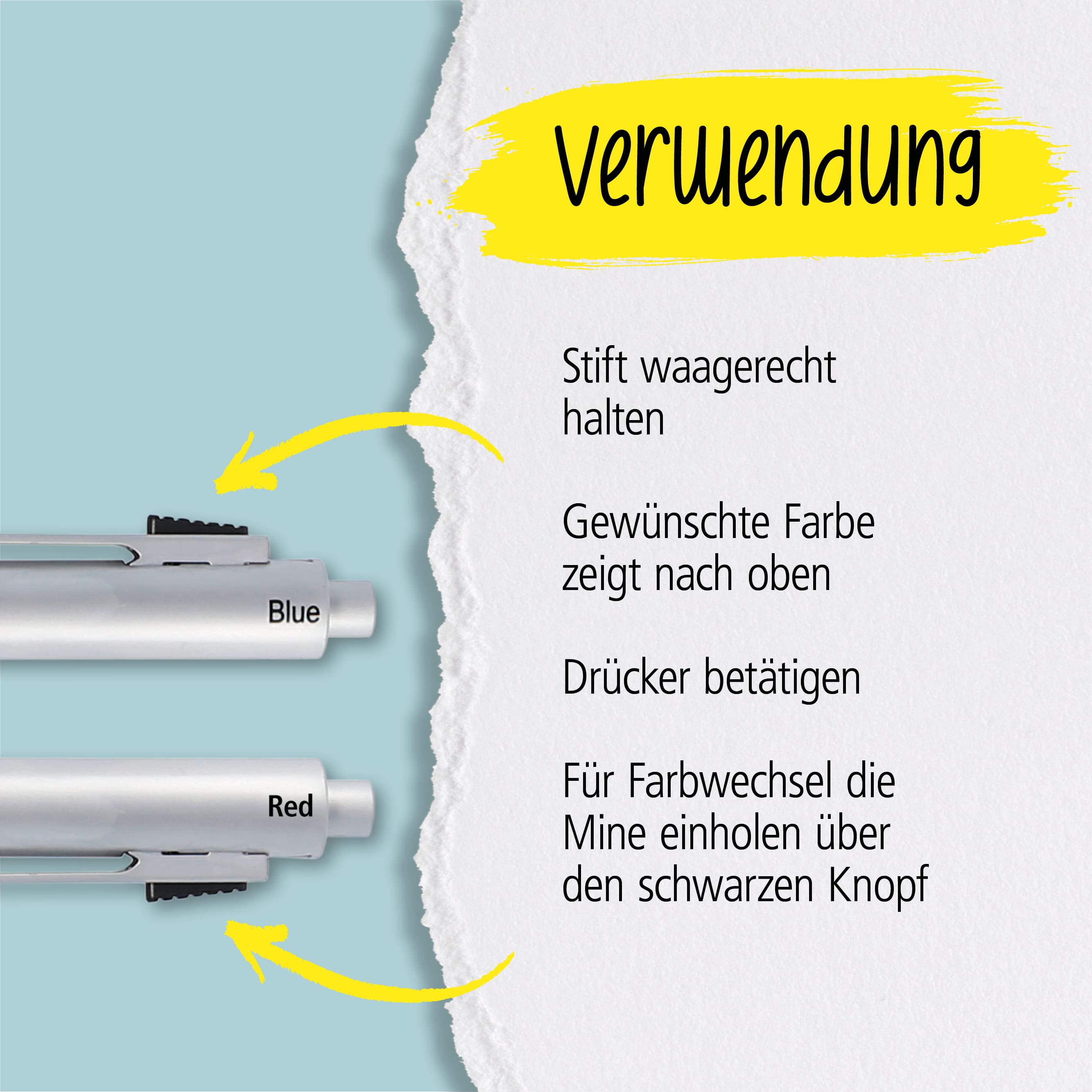- Kugelschreiber-Farben: Blau, Rot, Schwarz