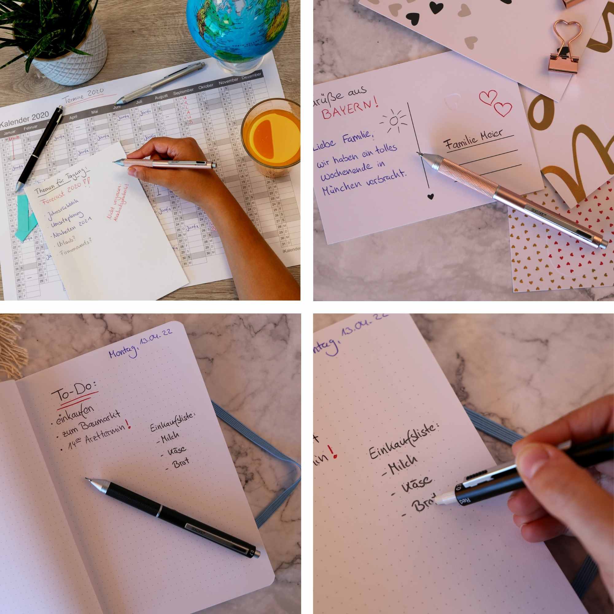 Manchmal braucht man einen Kugelschreiber in blau und manchmal in schwarz. Auch ein Rotstift und ein Bleistift sind ab und an praktisch. Aber wer möchte schon im Alltag ein ganzes Mäppchen Stifte für alle Eventualitäten mit sich herumtragen?