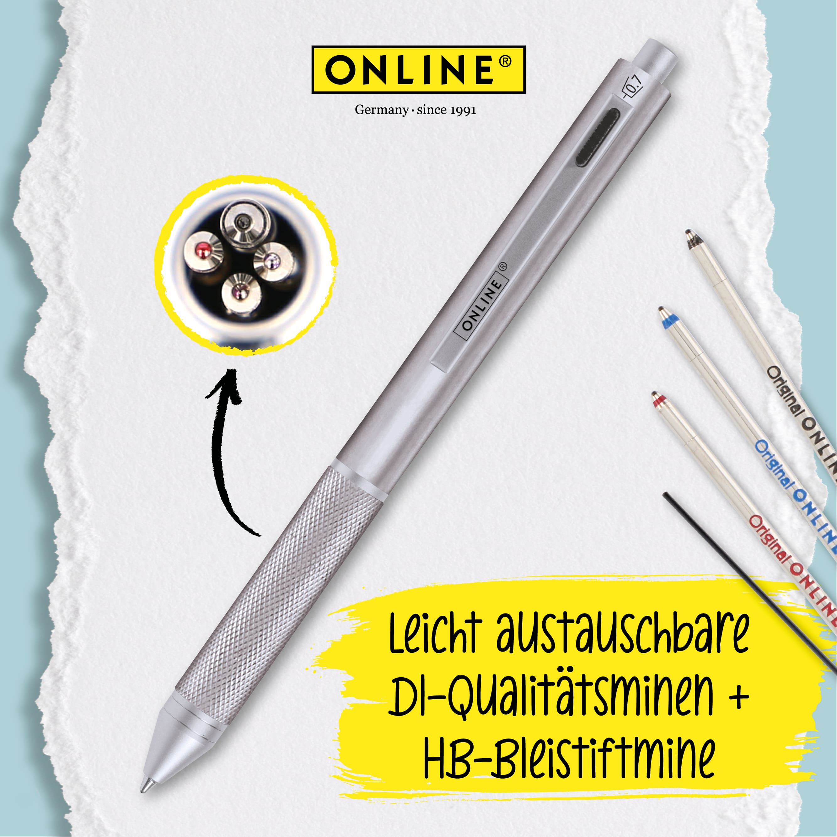 Multipen 4-in-1 Silver, inkl. Ersatzminen in Box