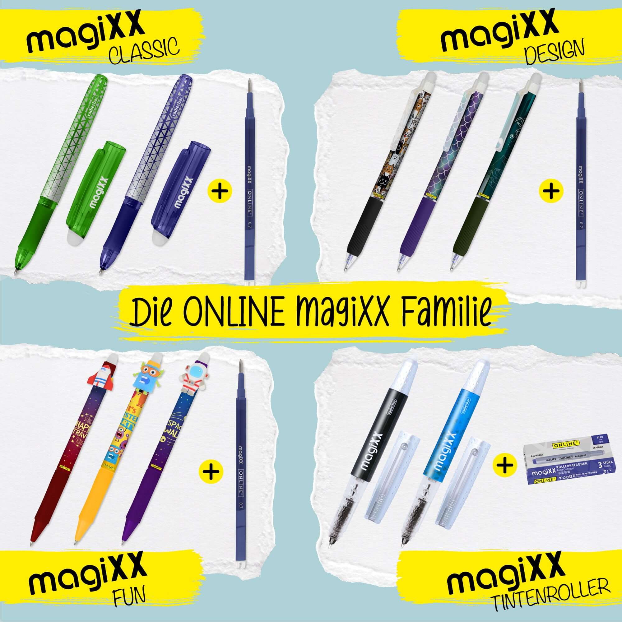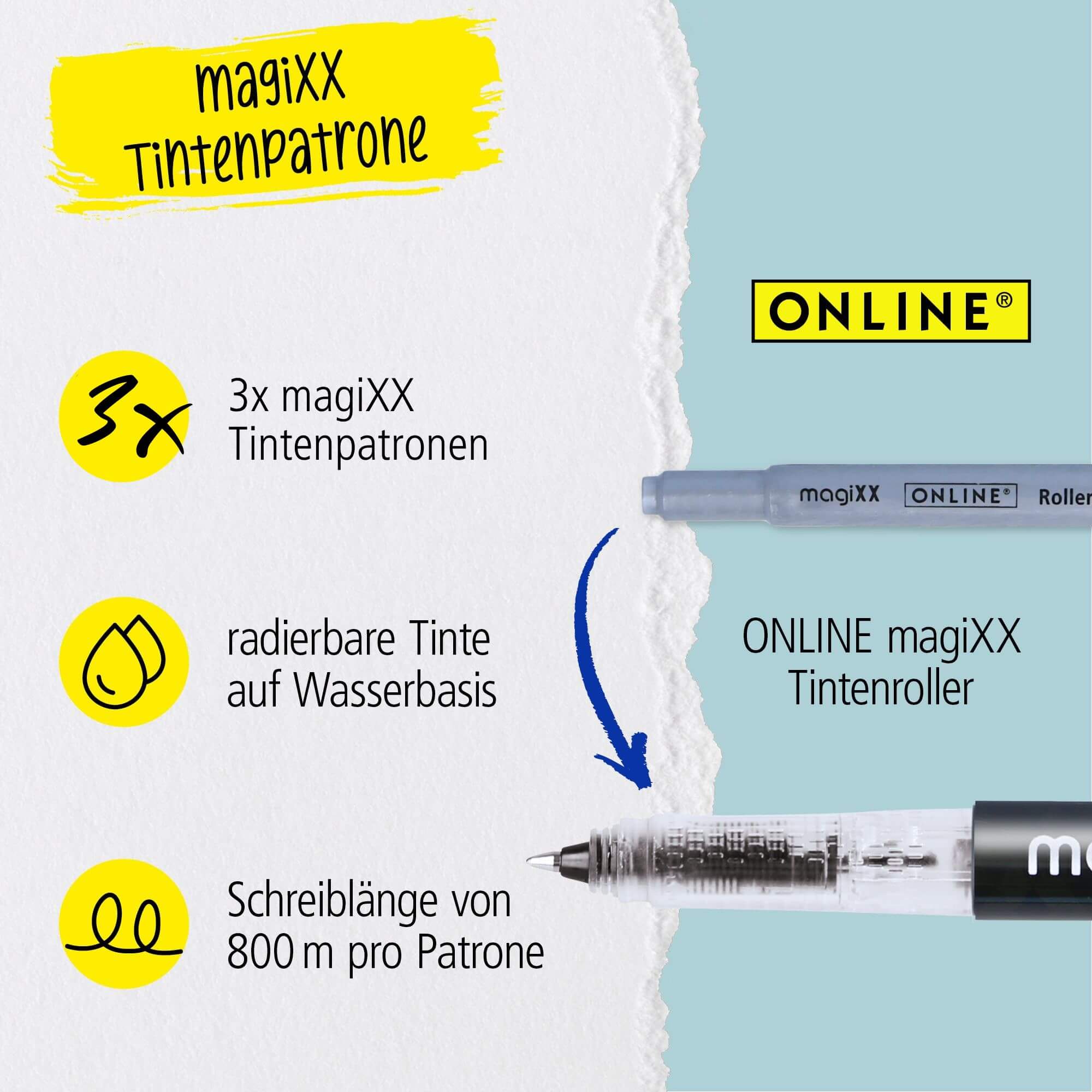 Die radierbare magiXX Tinte sorgt für ein extra langes Schreibvergnügen – pro Patrone mind. 800 m.