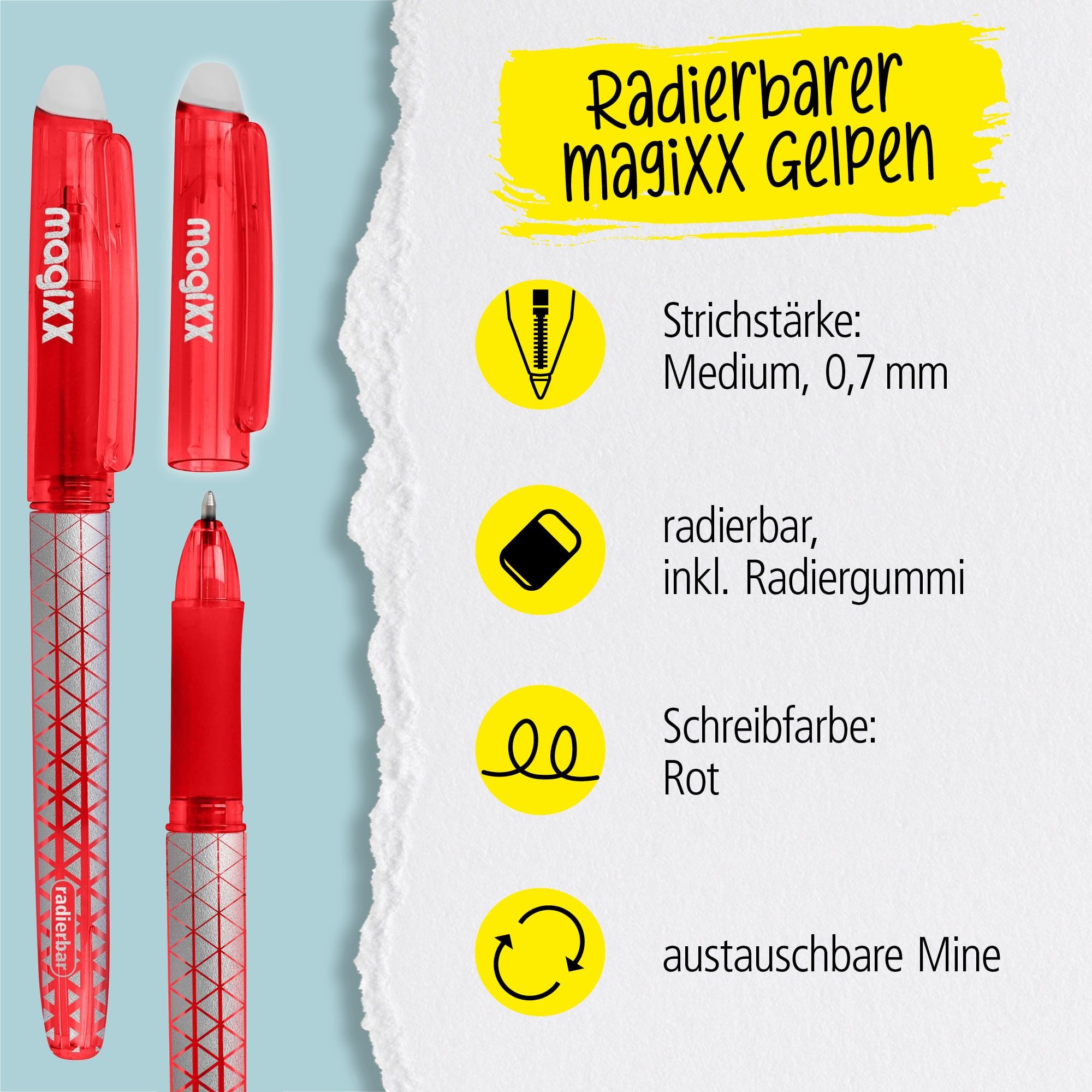 Unsere löschbaren Gelstifte ermöglichen ein müheloses Wegradieren von kleinen Fehlern, ohne Verwischen der Tinte. Die Magixx radierbare Gelschreiber geben konstant und gleichmäßig Gel-Tinte ab, die sich vollständig wegradieren lässt. Für eine saubere Schrift und zuverlässige Fehlerkorrektur.