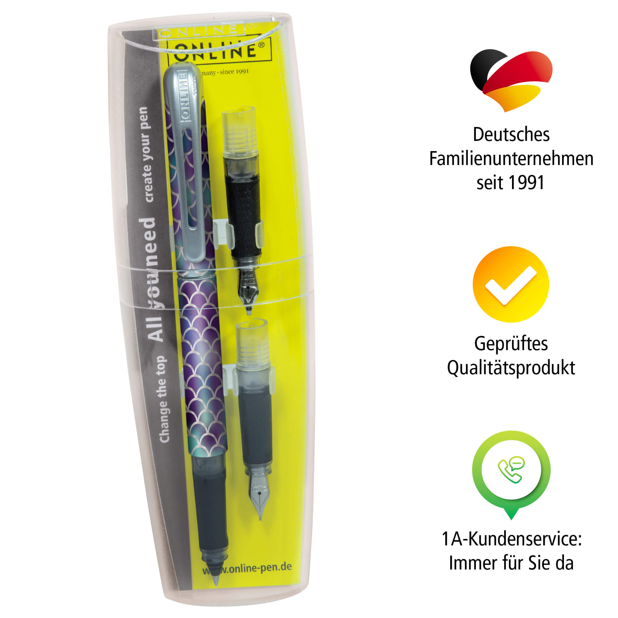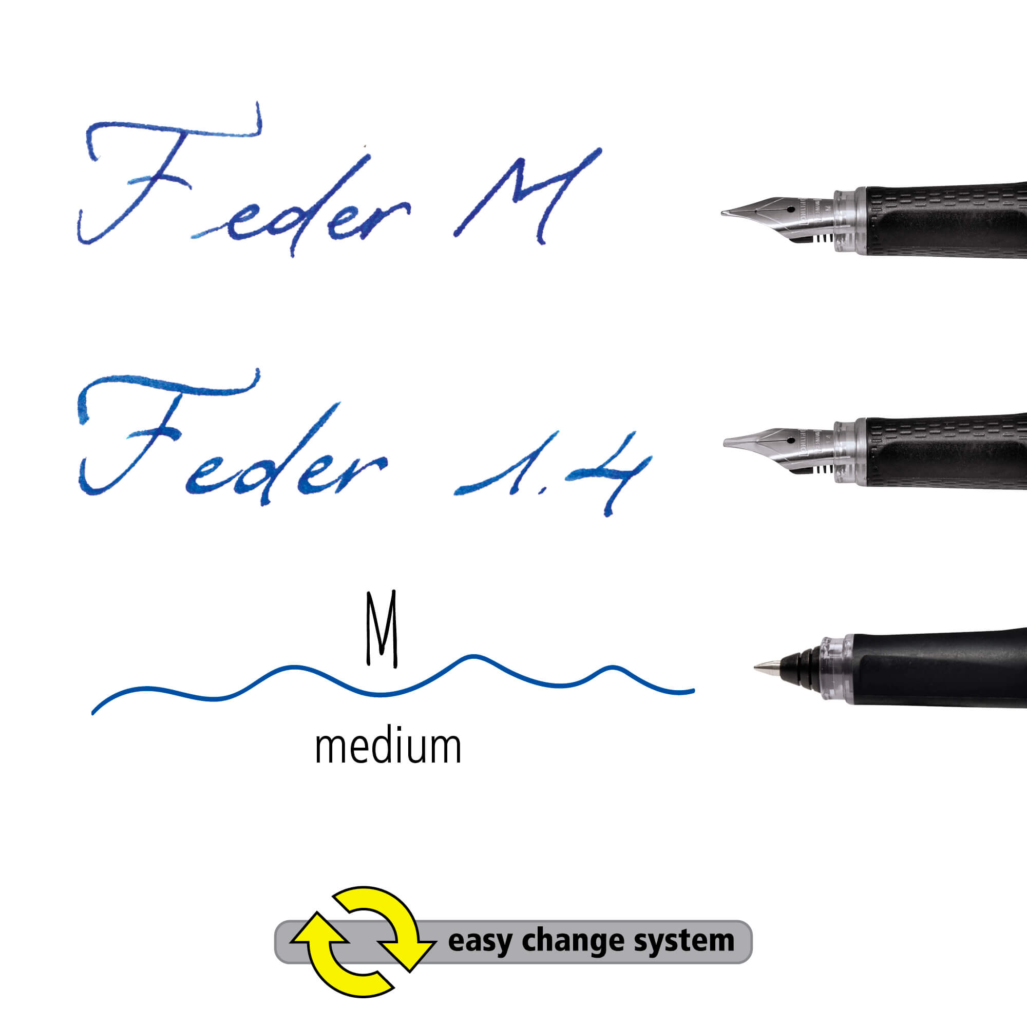 Dieses Set beinhaltet einen College Tintenpatronen-Rollerball in trendigem Design, ein zusätzliches Füller-Griffstück mit Iridiumfeder sowie ein Griffstück für Kalligrafiefüller 1,4 mm. Jede der drei Schreibsysteme garantiert ein flüssiges Schreibgefühl und ein tolles Schriftbild.